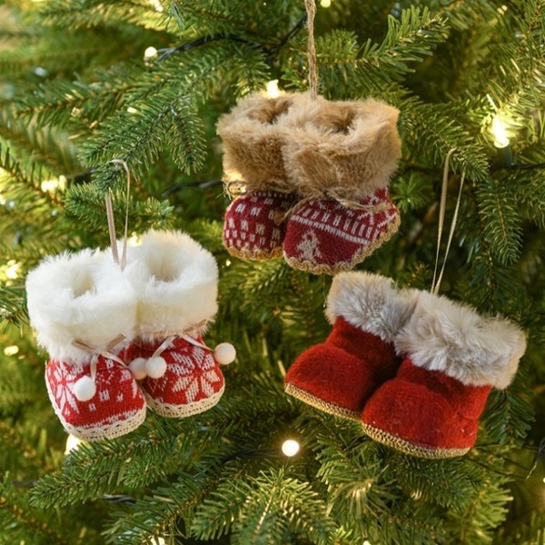New Christmas Idea Ornaments Red Fabric Boot Tree lf1324 One Size/NO.2 3ea