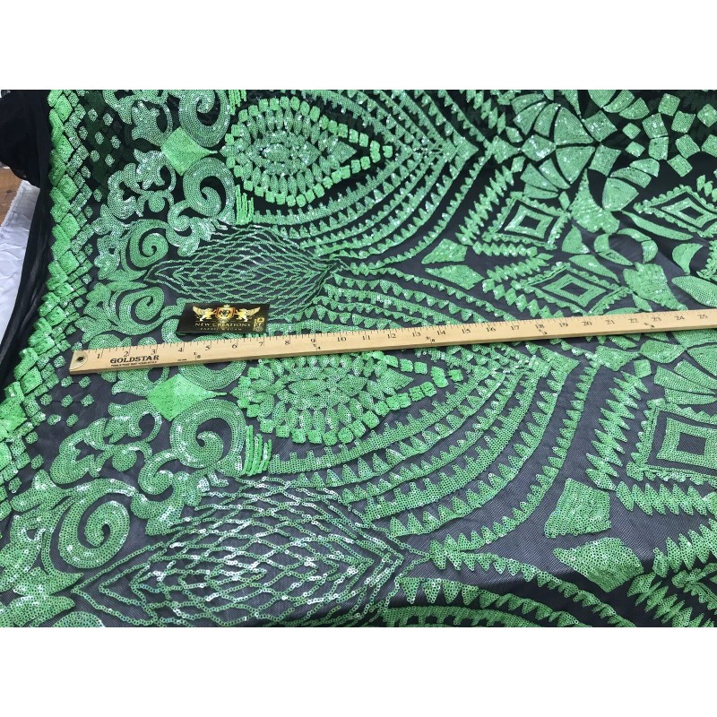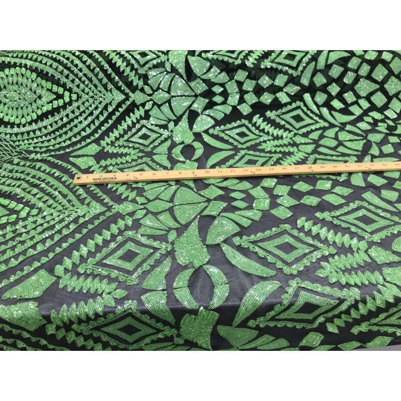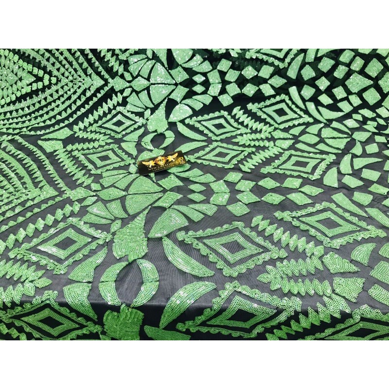 This GEOMETRIC DIAMOND design is embroidered with Sequins on a 4 Way Stretch mesh fabric. The Sequins has especial and extraordinary design on the Mesh . It is super elegant and classy, The royalty design embroider with iridescent Sequins on a mesh can be use for dresses, tablecloths, night gowns, Skirts, prom dresses, wedding dresses, runners for tables,decoration and much more.