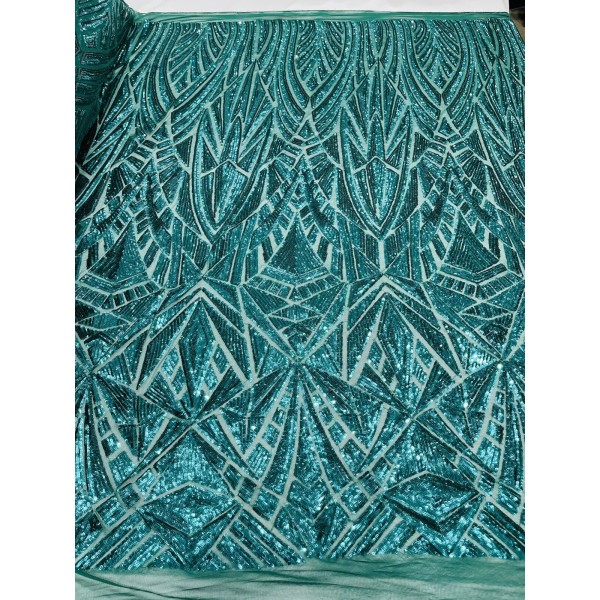 This GEOMETRIC DIAMOND design is embroidered with Sequins on a 4 Way Stretch mesh fabric. The Sequins has especial and extraordinary design on the Mesh . It is super elegant and classy, The royalty design embroider with iridescent Sequins on a mesh can be use for dresses, tablecloths, night gowns, Skirts, prom dresses, wedding dresses, runners for tables,decoration and much more.