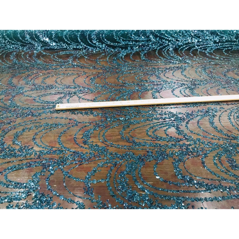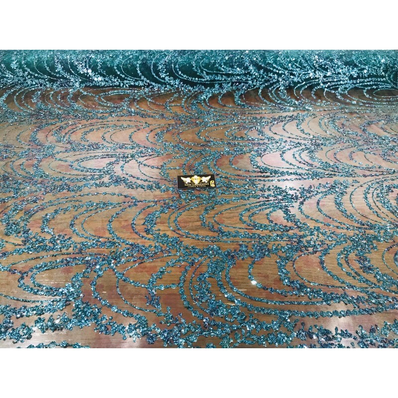 This shiny glitter damask design is made up of glue and sequins on a Mesh with glitter on the design. This lace is modern but yet classy and the glitter gives it's a beautiful look. The lace can be use for dresses, tablecloths, runners, decoration,skirts,jackets, nightgowns, prom dresses, apparel and much more.