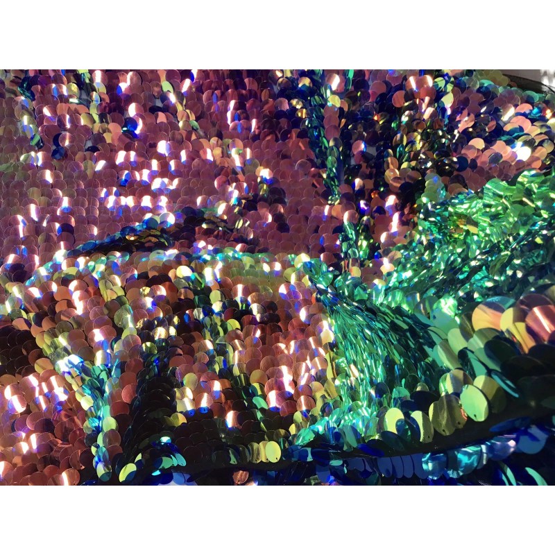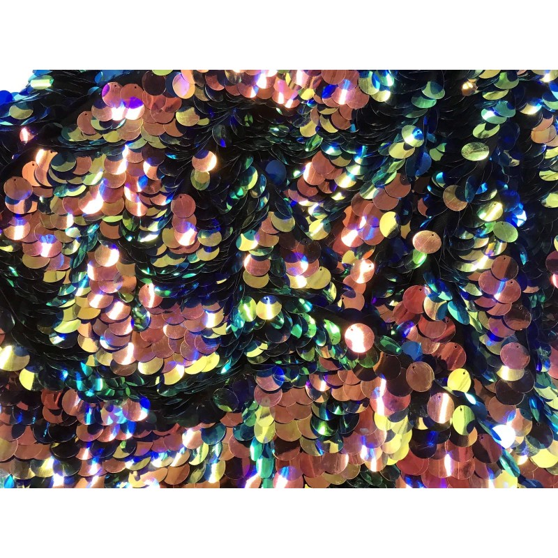 New Creations Fabric And Foam Inc Paillette 20mm Multi Color Round Iridescent Sequins On A black Mesh-By Yard.