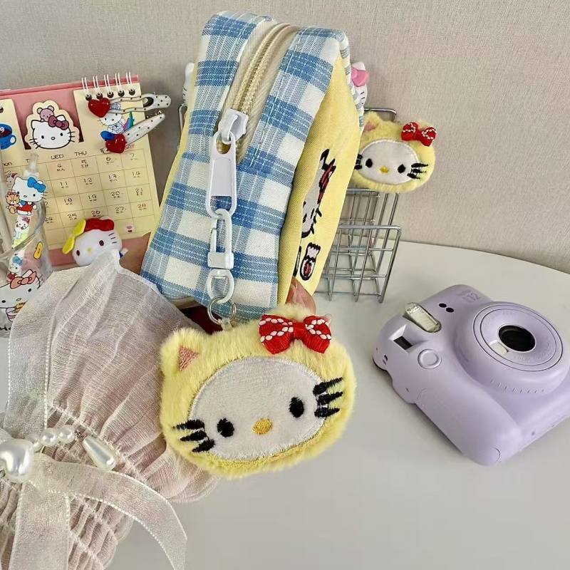 🐾 Featuring an adorable cat motif paired with a chic check pattern, this pouch is a delightful accessory that stands out. Its unique design makes it a fun addition to any collection.