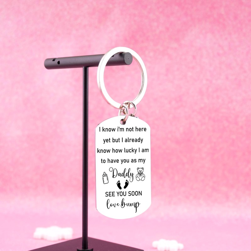 - Dad To Be Keychain/New Dad Keychain:Made of durable stainless steel,this new dad keychain is perfect as a bag charm or sentimental keepsake.Its high-quality material ensures long-lasting memories.
