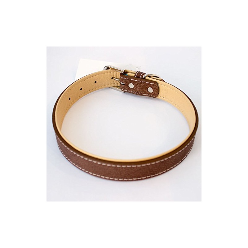 - Brand new, unopened, with tag. Hard wearing. Lined for comfort. Brown external collar with cream lining. PU Leather is a synthetic material with the appearance of leather, it is widely used as a hard-wearing and waterproof alternative to leather.
