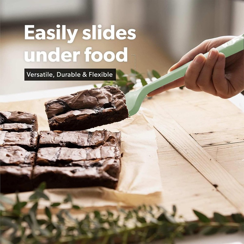 - THE ARTISTRY OF NON-STICK COOKING – Perfect your culinary masterpieces with ease and confidence. Fashioned from non-stick pro-grade silicone, these spatulas are your trusted allies in the kitchen. Whether flipping fluffy omelets or serving delicate pastries, rest assured they won't scratch your cookware, allowing you to focus on creating delicious dishes without worrying about damaging your pans