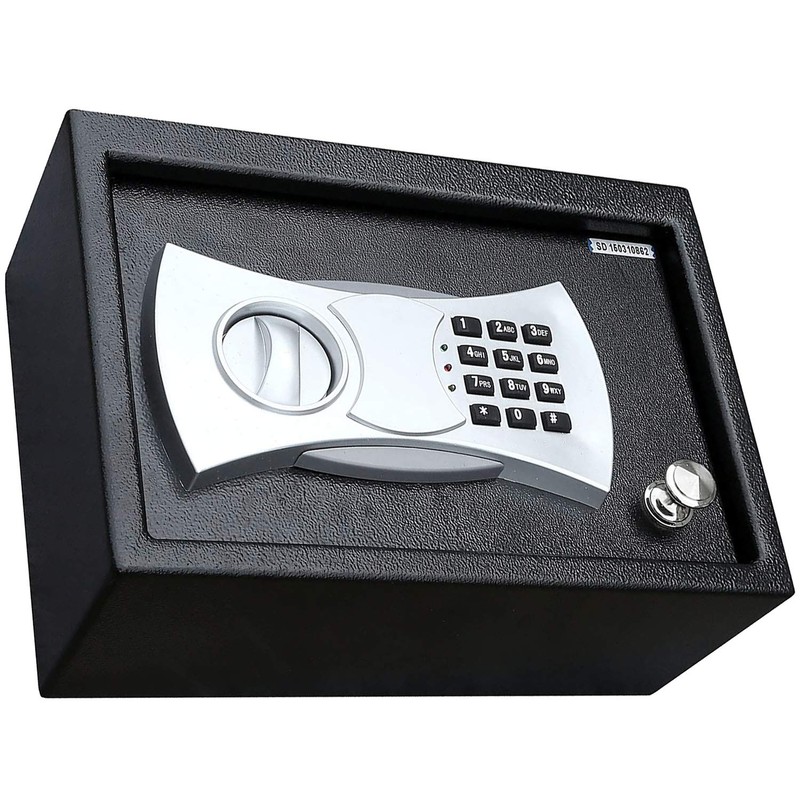 - Thickness for Body and door : 1.5mm/4mm ,Exterior dimensions: 4.21 "H x 11.8"W x 8.6" D, 4.09 "H x 11.6"W x 8.4",weight : 6KG,Color: Black Drawer Safe with Electronic Lock