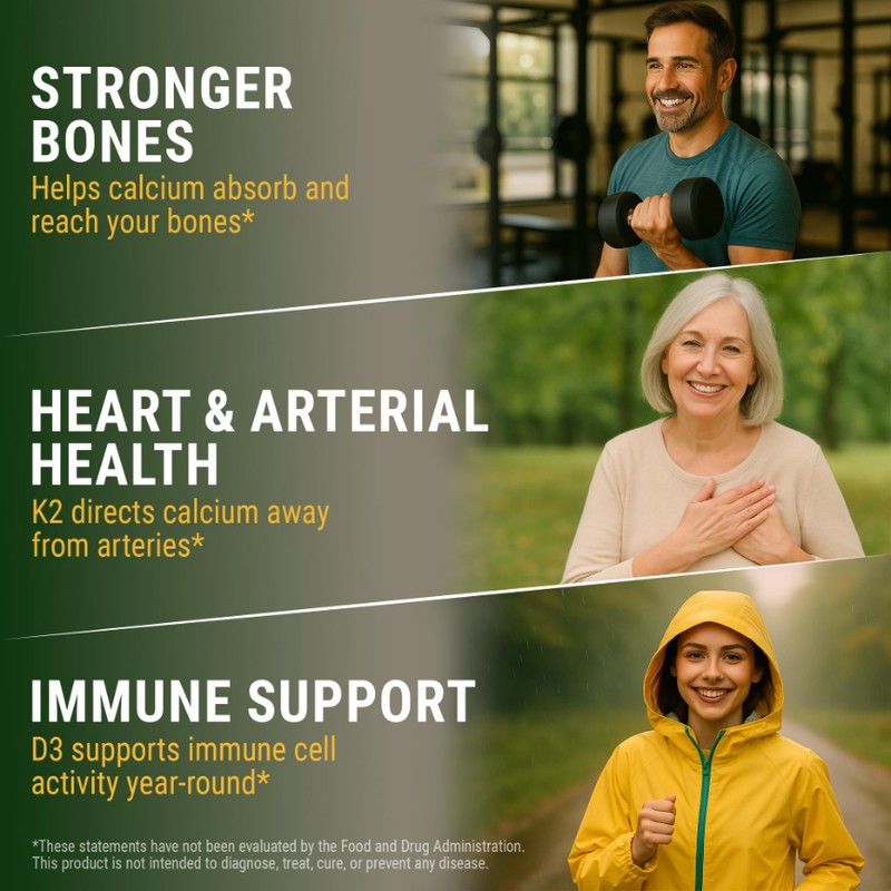 🛡️ Immune & Heart Support: High-potency D3 (10,000 IU) with K2 MK-7 helps strengthen immune defense and supports arterial health.