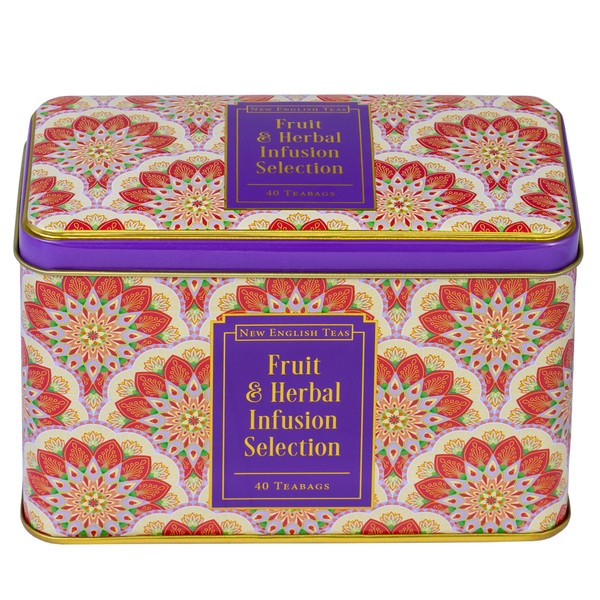 New English Teas Fruit & Herbal Tea Caddy with 40 Infusion Teabags - Rosehip, Hibiscus, Peppermint, Camomile, Black Tea with Lemon & Ginger