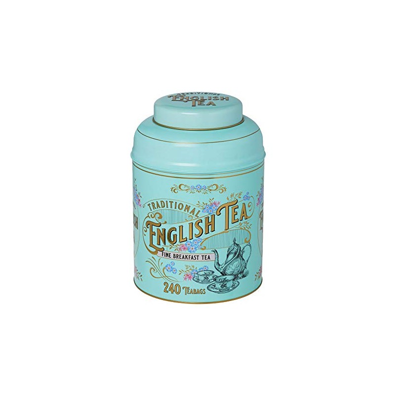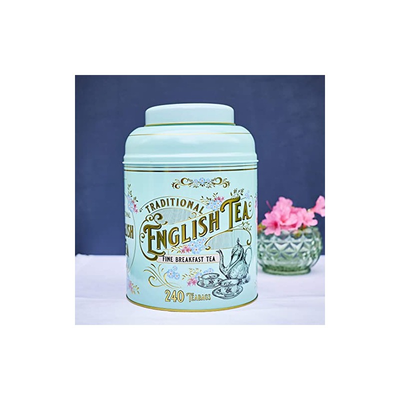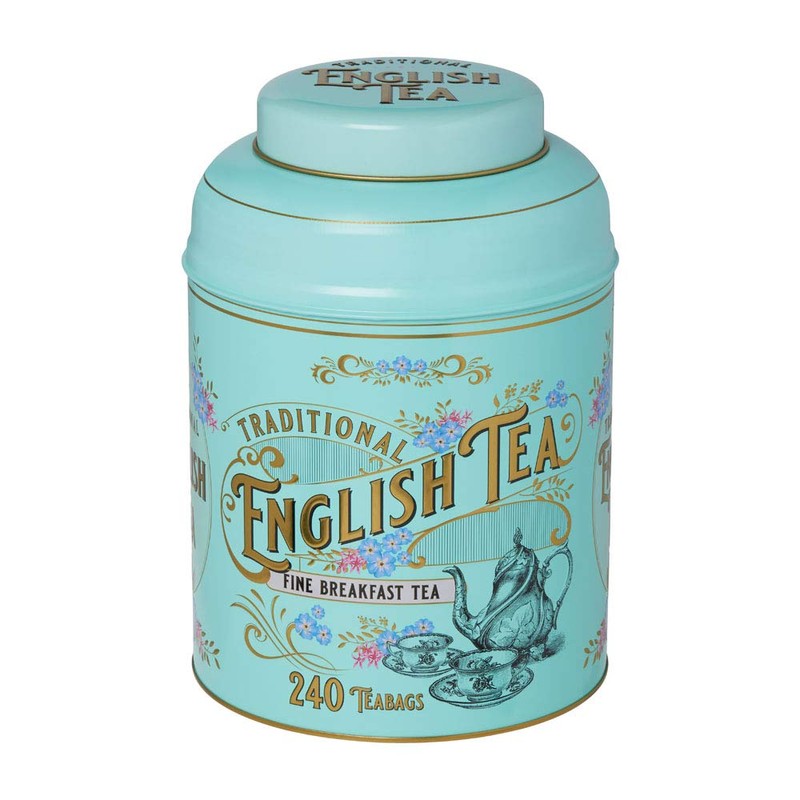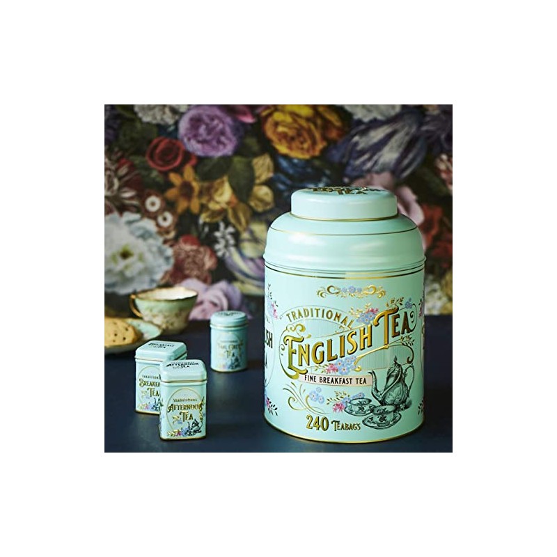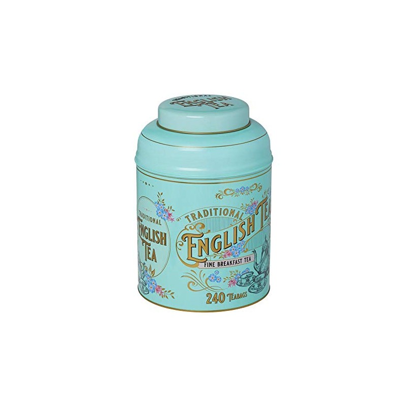 New English Teas Vintage Victorian Round Tea Caddy with 240 Fine English Teabags (Mint Green)