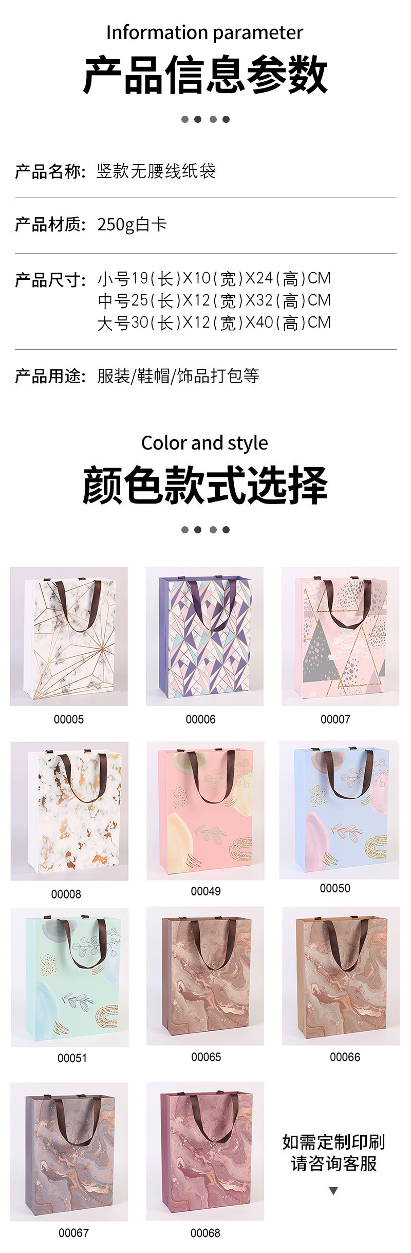 New Factory Geometric Pattern High-Quality Portable Gift Paper Bag 00007 (19x10x24cm) 20ea