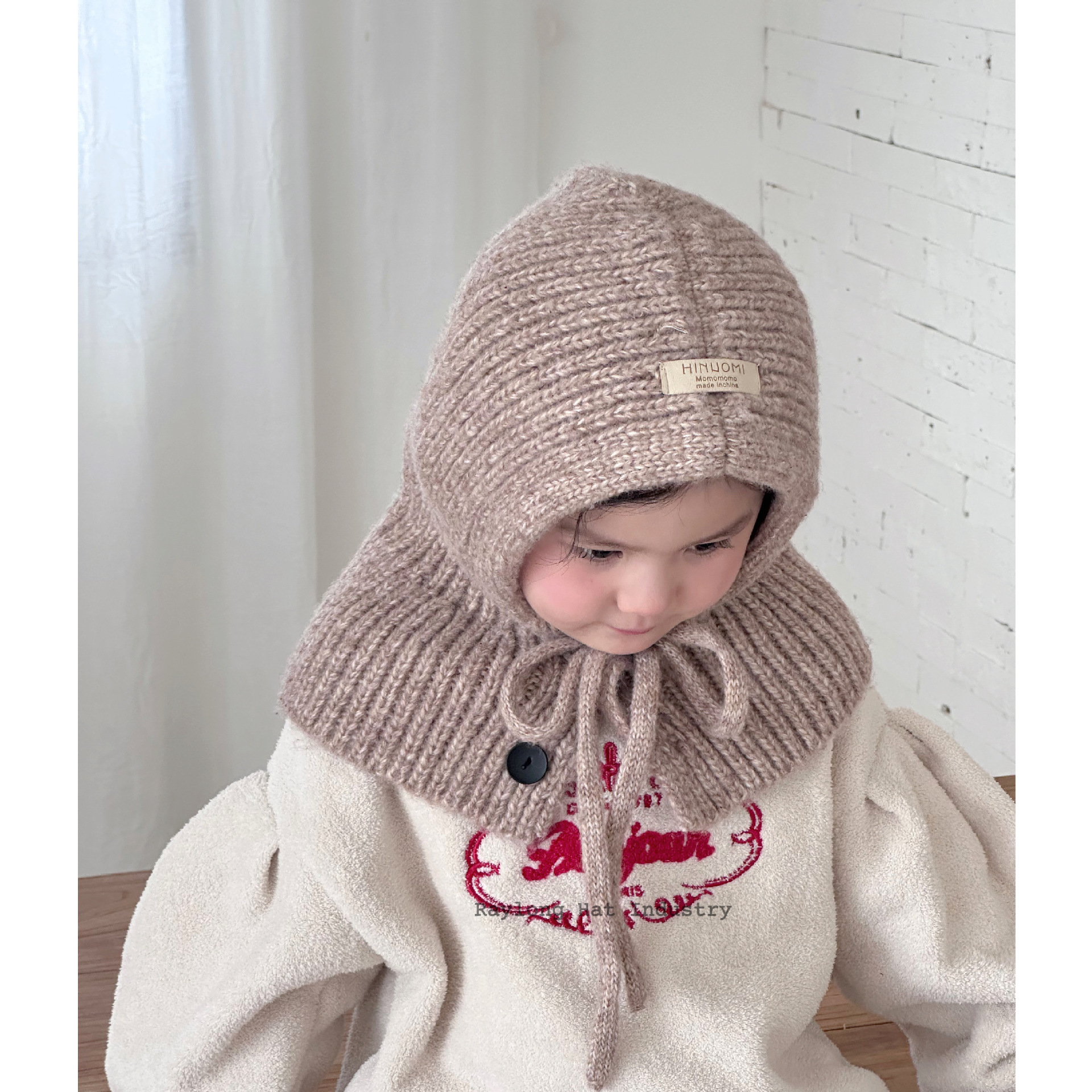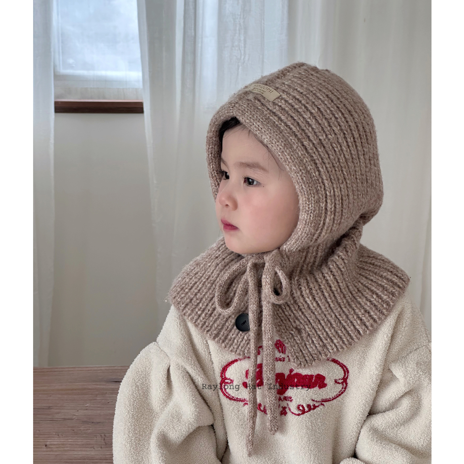 New Fall/Winter Kids' One-Piece Knit Wool Balaclava Pullover Hat LF2265 - One Size Beige 3ea