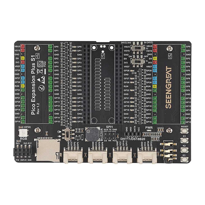 Comes with the Pico Expansion Plus S1, it is an upgraded expansion board specially designed for the Raspberry Pi Pico. It not only has the status indicator LED lights of all GPIOs