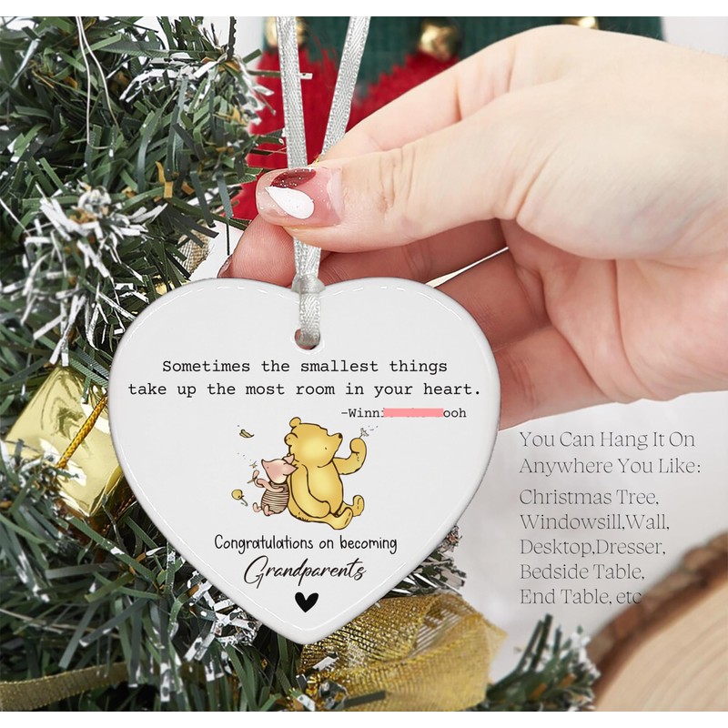 New Grandparents Gift-Winie Gifts The Pooh-Promoted to Grandparents-Baby Gift Shower-Pregnancy Announcement Gift,Baby Reveal Idea Sometimes The Smallest Things-Heart Shaped Ornament