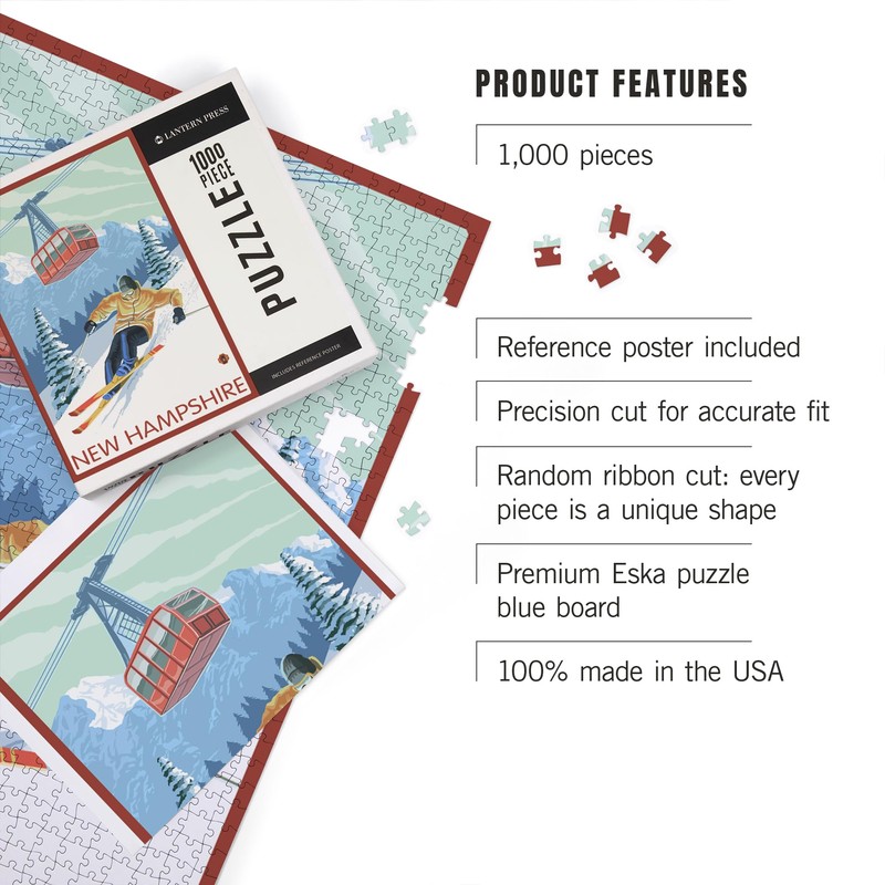 - New Hampshire, Skier and Tram (1000 Piece Puzzle, Challenging Jigsaw Puzzle for Adults, Made in USA).