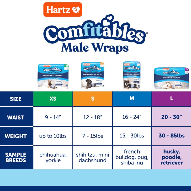 New! Hartz® Comfitables® Disposable Male Dog Wraps with Stretchy Waistband, Large 24 Count