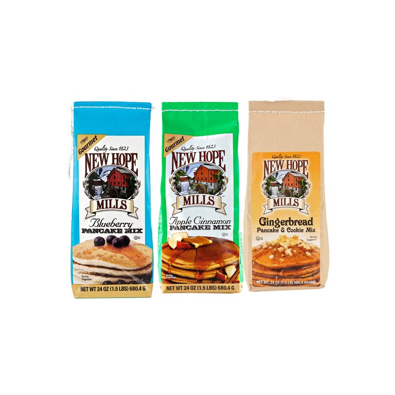 New Hope Mills Blueberry, Apple Cinammon & Gingerbread Pancake Mix Variety 3-Pack