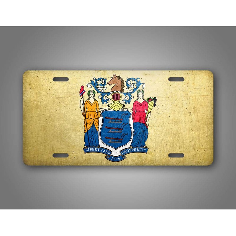 New Jersey Americana Weathered Metal Flag License Plate Antique NJ State Flag Auto Tag