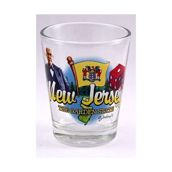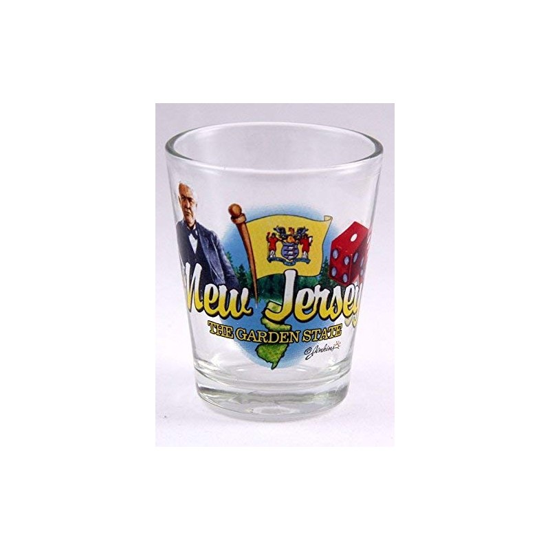 Here's a very rare and hard to find souvenir collectible shot glass from New Jersey. It's a 5x6cm style shot glass measuring 2.25" tall and 1.8" in diameter.