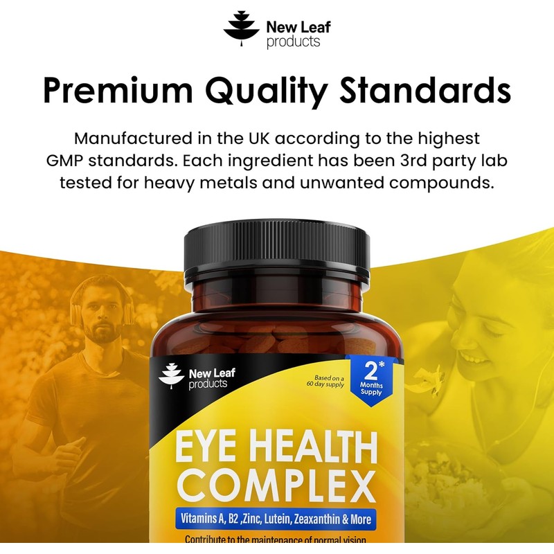 New Leaf Lutein Eye Health Complex – Lutein & Zeaxanthin Supplement with Vitamin A, B2 & Zinc for Vision Support – Made in the UK