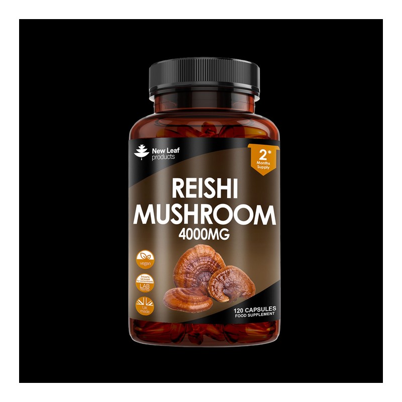 HIGH-QUALITY REISHI MUSHROOM CAPSULES - New Leaf's Reishi Mushroom Capsules are crafted using 4000mg of Reishi Mushroom Extract per serving, offering a rich source of polysaccharides, Beta-Glucans, and Triterpenes. Reishi, also known as Ganoderma lucidum, is a type of mushroom that has been used for centuries in traditional Eastern practices. It naturally grows in humid environments, typically found on decaying hardwood trees in Asia, particularly in China and Japan.