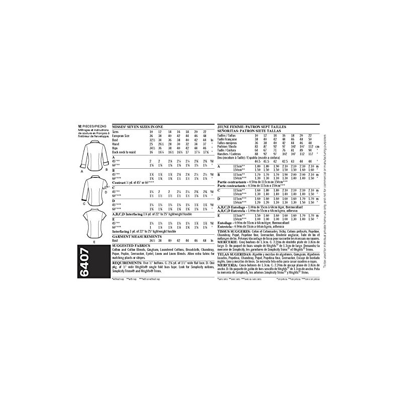 New Look Sewing Pattern 6407: Misses Tops, Size A, Cotton, White, A (10-12-14-16-18-20-22)