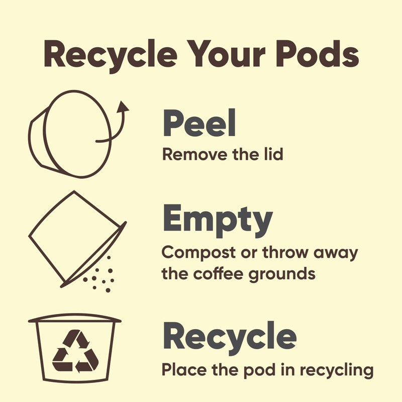 - SUSTAINABLE COFFEE PODS - Our single serve capsules are easy to recycle and your spent grounds are great for compost or to use as a fertilizer to give your soil a nice nutrient boost.