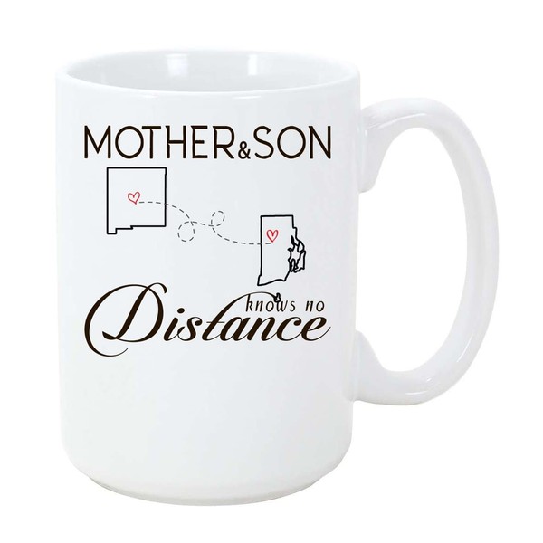 New Mexico Rhode Island Mug 15oz Long Distance - The Love Between Mother And Son Knows No Distance - Mother's Day Gift From Son State To State NM RI Mug Ceramic