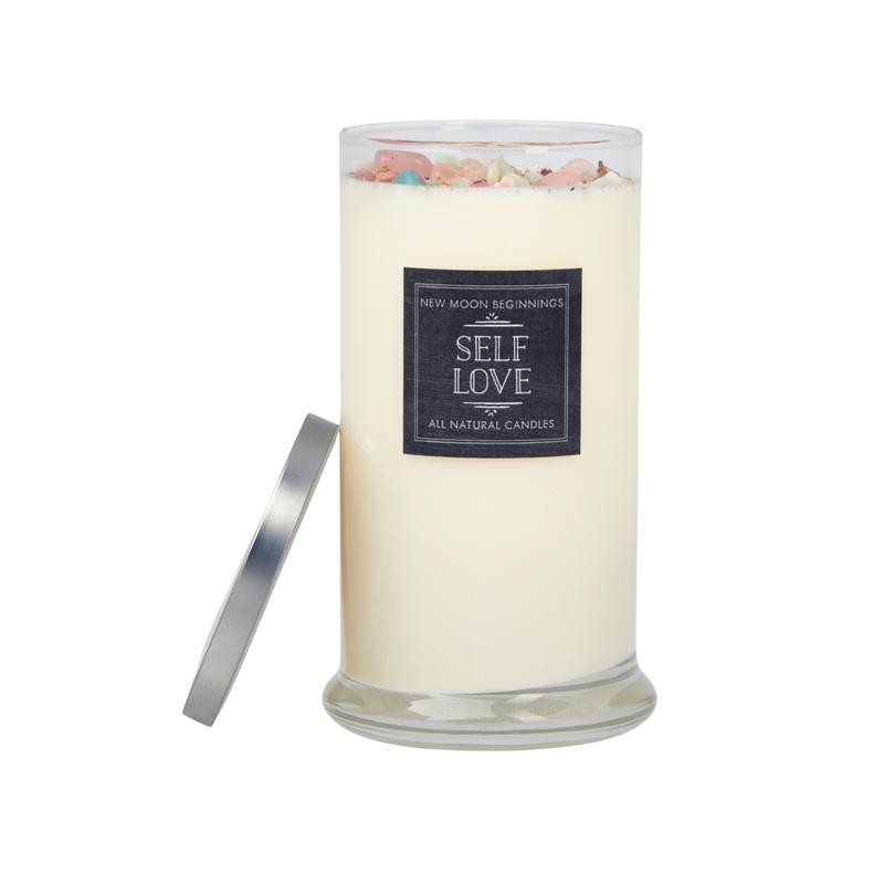 New Moon Beginnings Self Love Candle - Negative Energy Cleansing - Soy Aromatherapy Candle - Handmade Candle with Crystals & Herbs - Self Care Candle - Style of Jar: 21oz Glass Jar