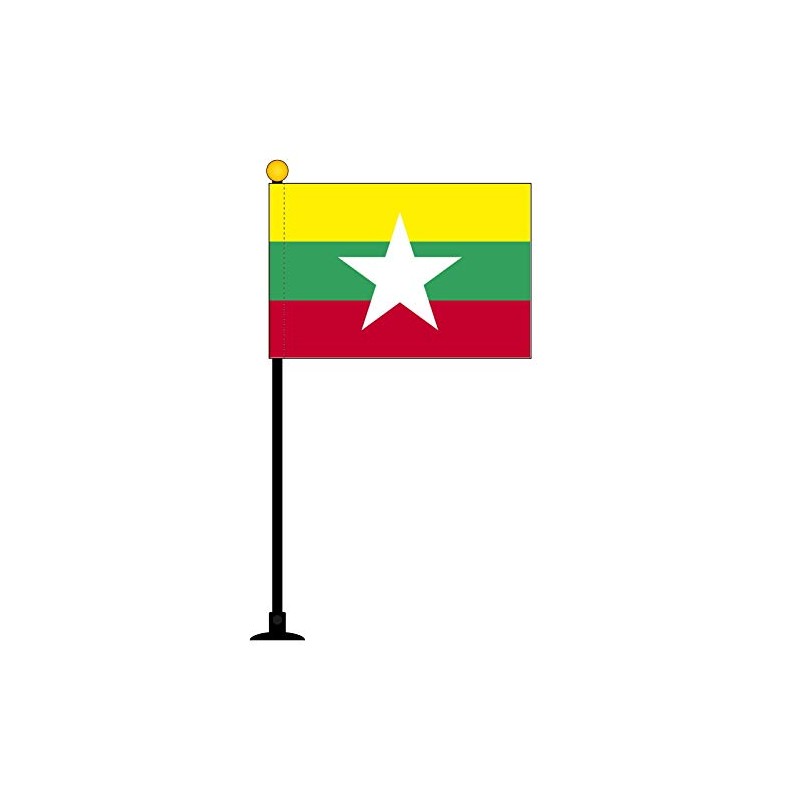 New Myanmar Flag [Mini Flag Pole with Suction Cup with high-grade TR]