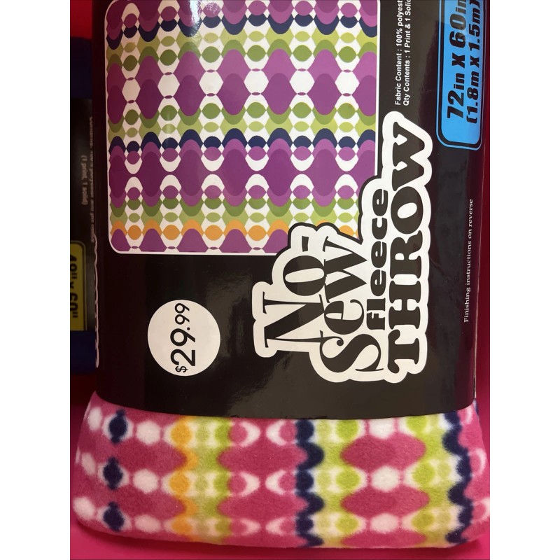 New, No-Sew Fleece Throw Kit, 72"x60", 1 Print & 1 Solid