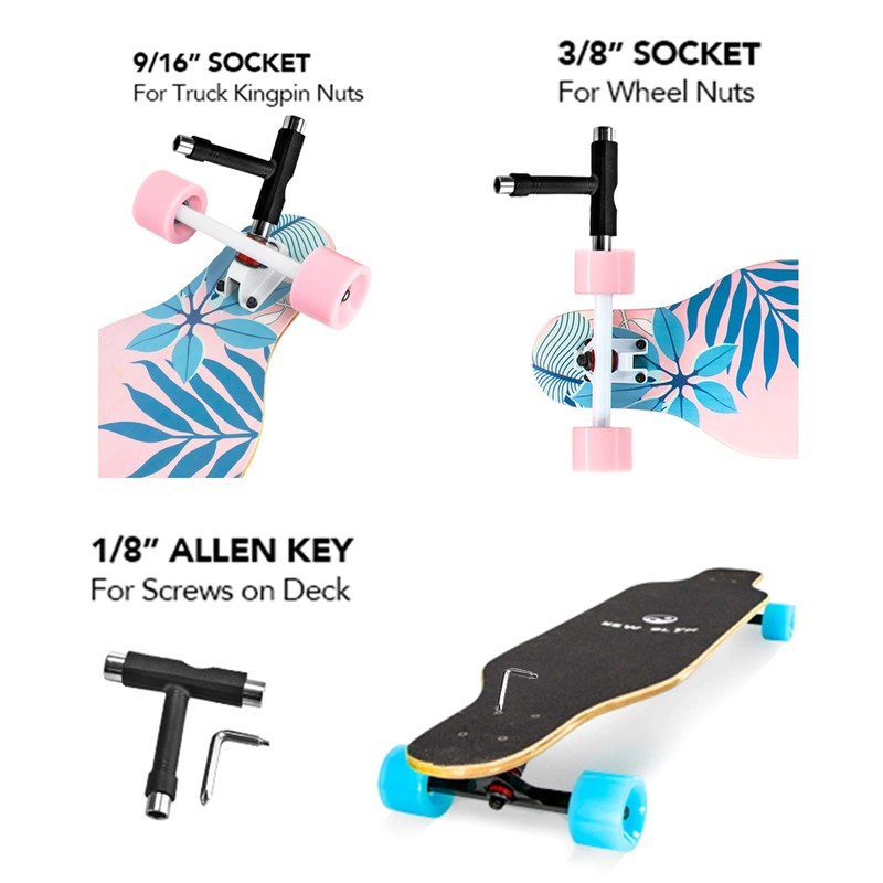 - 【SMOOTH & SPEEDY RIDE】 Super smooth anti-shock PU wheels with super smooth degree Abec-9 Chrome steel and SHR95A supper soft bushings deliver a very smooth ride. Equipped with the All-in-One Skate T-Tool, have everything you need to tighten up or repair your skateboard.