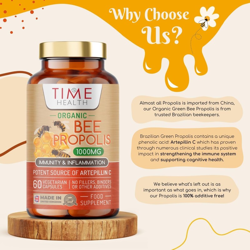 - 🐝 IMMUNE SUPPORT, ANTIOXIDANT ACTION, ANTI-INFLAMMATORY & ANTI-AGEING BENEFITS. Our Organic Green Bee Propolis contains a unique phenolic acid: Artepillin C which has proven through numerous clinical studies its positive impact in strengthening the immune system and supporting cognitive health, working as a nootropic.