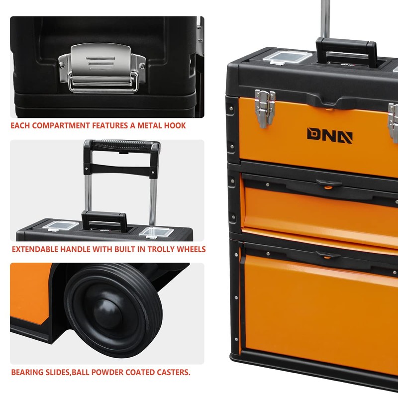 New Package DNA MOTORING 633mm X 490mm X 230mm 3-Tier Stackable Separate Hand Case Tool Boxes Trolley Set Orange (TOOLS-10004)