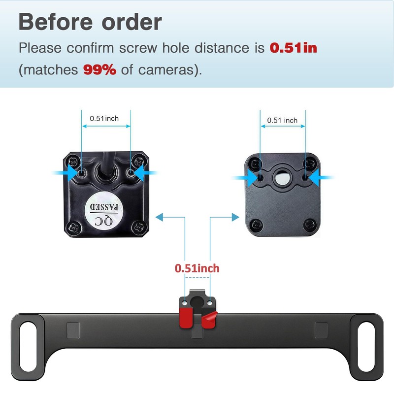 - 【Premium 304 Stainless Steel-100% Rust-Proof】 Tested and improved over 3 years, our new backup camera license plate mount is made of high-grade 304 stainless steel, solving rust issues and significantly enhancing durability. Designed to withstand all weather conditions, our back up camera license plate mount bracket is now also features stainless steel mounting screws for long-lasting stability and corrosion resistance.