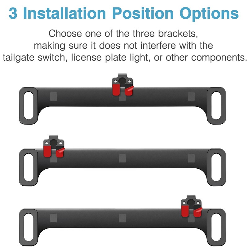 The upgraded universal back up camera bracket holder now offers left, center, and right mounting options, allowing for greater flexibility, won't interfere with trunk handles or license plate lights. Check your back up camera’s ideal placement before order.