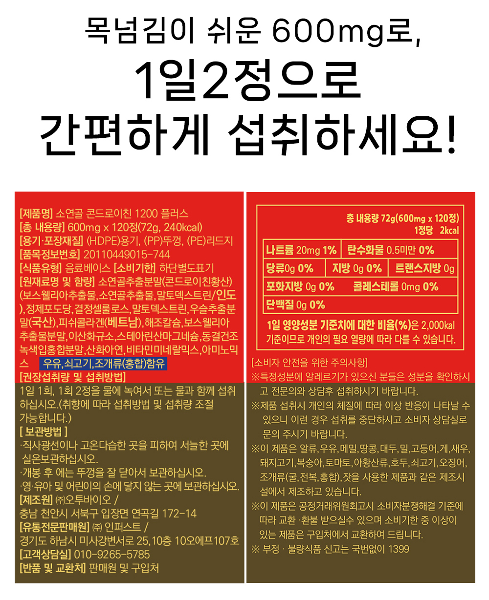 뉴프레이 소연골 콘드로이친 1200 플러스 4개월분