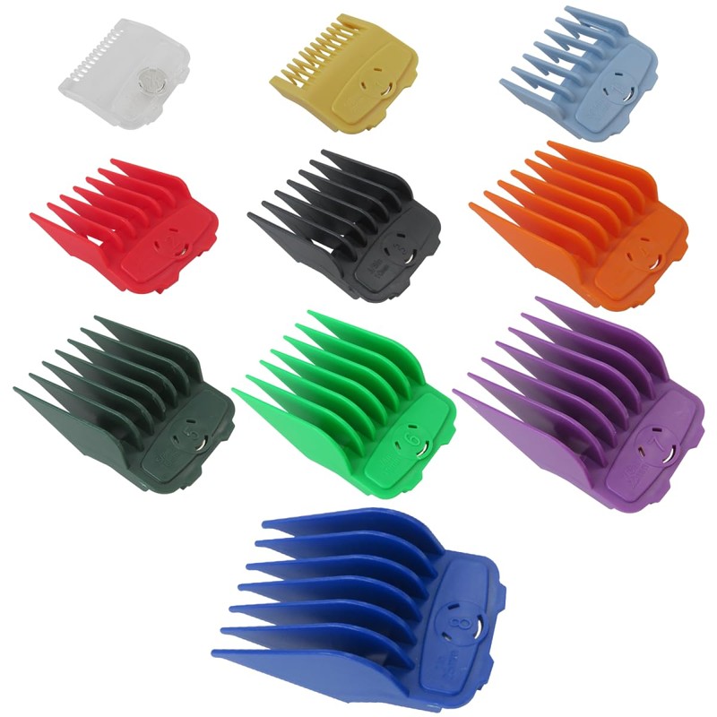 - 10pcs Clipper Guards Set Including: 1.5mm(1/16"), 3mm(1/8"), 4.5mm(3/16"), 6mm(1/4"), 10mm(3/8"), 13mm(1/2"), 16mm(5/8"), 19mm(3/4"), 22mm(7/8"), 25mm(1")