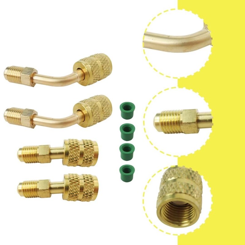 - You will Get: For this air conditioner adapter kit, you will get 2 pcs straight type adapter, and 2 pcs angled adapter of 45 degrees, these R410A adapters 5/16" sae female quick couplers to 1/4" sae male flare