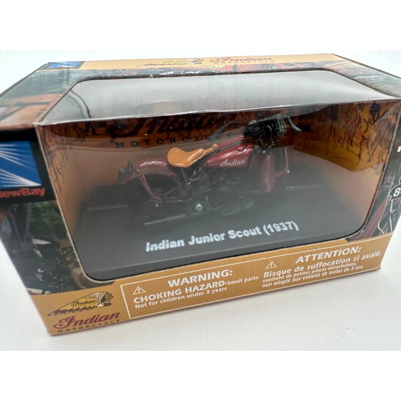 New-Ray 1937 Indian Junior Scout Red Motorcycle Die Cast with Plastic G scale Model 1:32