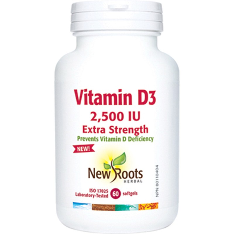 New Roots Vitamin D3 2,500IU Extra Strength Softgels, 180 Softgels