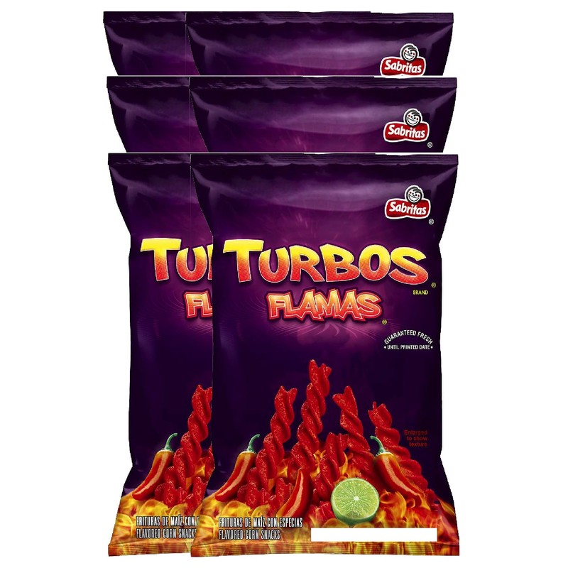 - Take your taste buds to whole new levels with this bag of Sabritas Turbos Flamas. These yummy treats are corn-based snacks that have a spiral shape covered with a red spicy chili and lime seasoning. Delicious and intense, you'll love adding them to your next party or movie night!