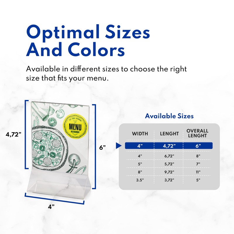 Not just for menus, but this table menu card holder made from clear acrylic can be use to display anything from pictures, awards, calendars and upcoming events at your table, desk, office, or dining room.