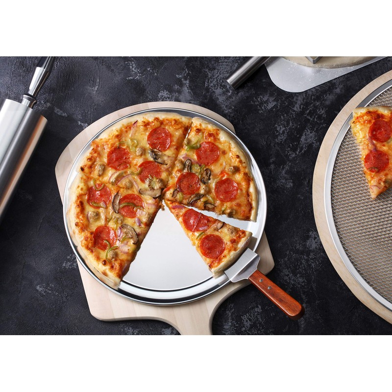 New Star Foodservice 50868 Pizza Pan / Tray, Wide Rim, Aluminum, 8 Inch, Pack of 6