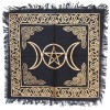 Dress up any table or altar with this elegant black and gold fringed cloth! The intricate triple moon and pentacle design is printed in shimmery metallic ink. Altar cloth measures approximately 18 inches square.