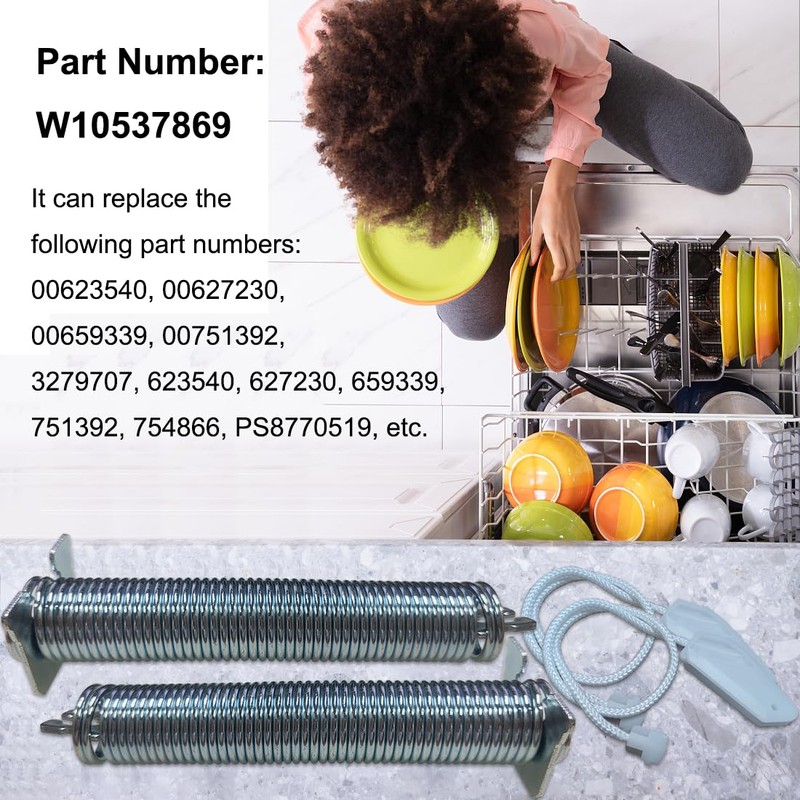 - Easy to Install: 00754866 Dishwasher Door Spring Kit Solved the problem caused by the lack of elasticity of the spring, and the hook and rope were not strong enough, resulting in the door being unable to open and close normally. Before replacement, cut off the power supply, put on work gloves, remove the old spring and replace it with new Spring Kit