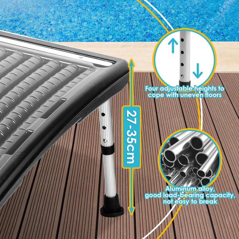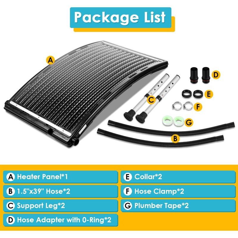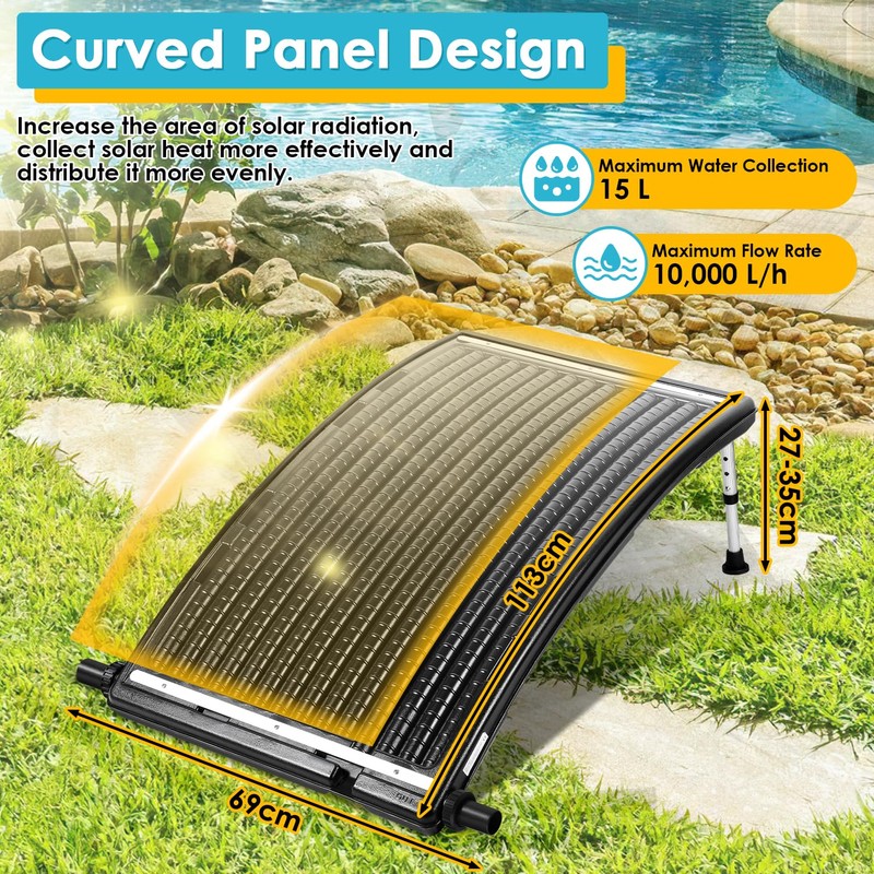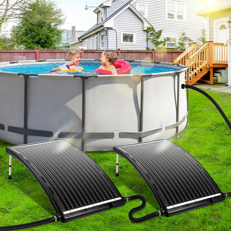 - ☀️ Eco-Smart Efficiency: The solar pool heater for above ground pool - zero electricity or gas needed! Its curved solar design maximizes heat absorption, warming water faster while saving energy and lowering costs, Allows you to enjoy a longer swimming season.