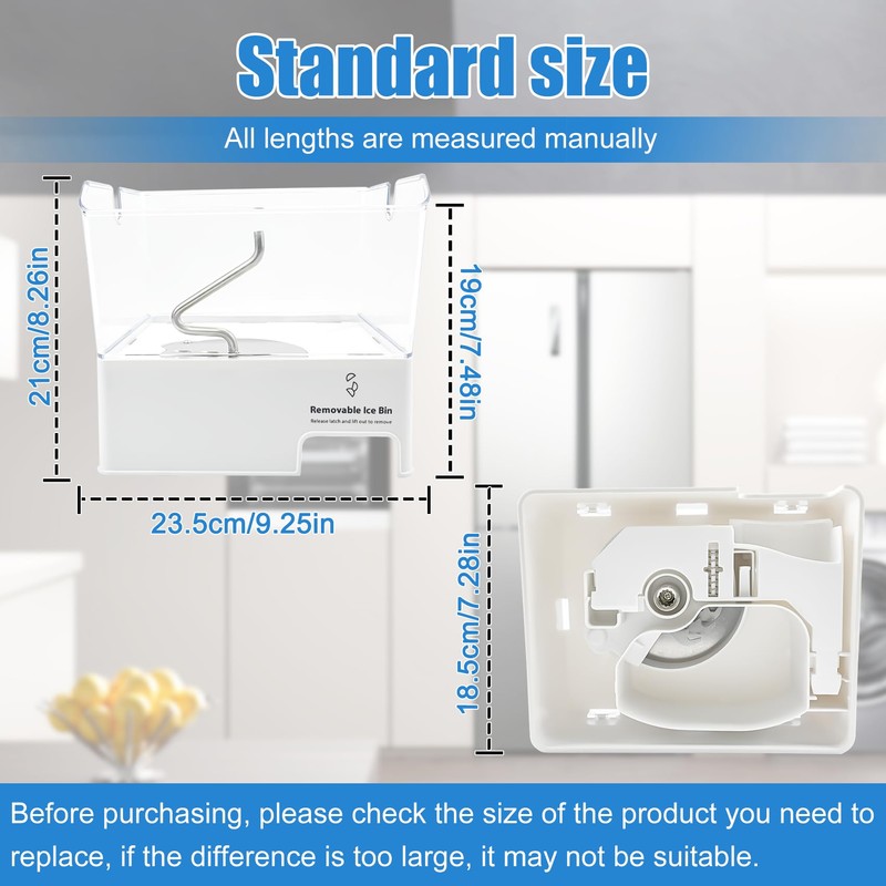 • 【Warm Note】 To avoid damaging the ice container, please needs to check the ice Bucket from time to time to make sure there are no hardened large blocks of ice; Please turn off the power before installation and inspection, and wear insulating gloves to prevent injury. This W10347093/WPW10347093 ice bucket assembly is built to withstand the constant freezing and thawing cycles within your Whirlpool refrigerator, This W10347093/WPW10347093 Whirlpool ice maker parts ice container ensures a seamless fit and optimal performance, providing a steady supply of fresh, crisp ice cubes whenever you need them