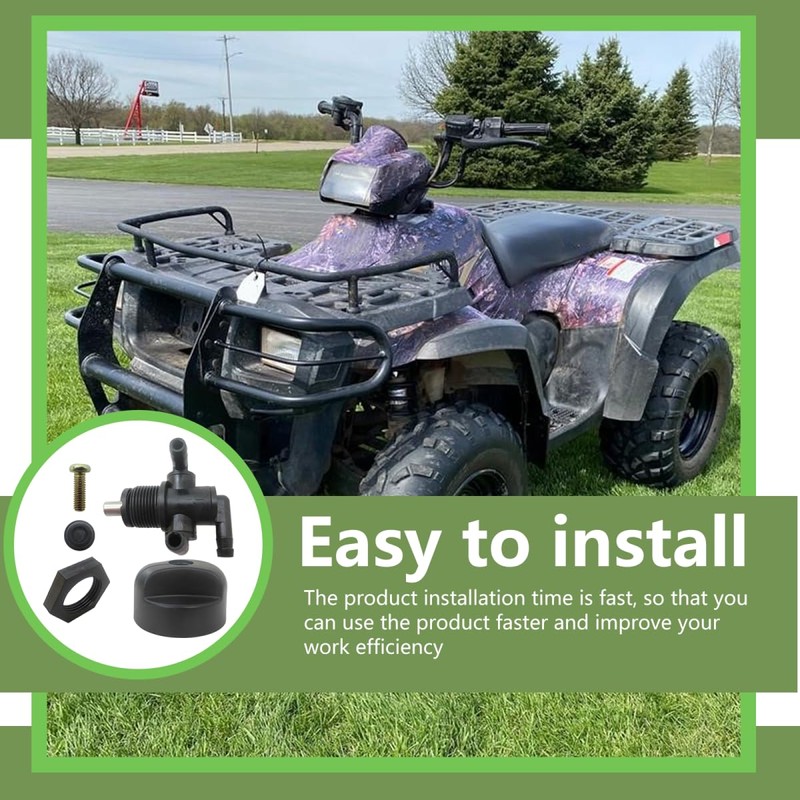 New Version 7052161 Fuel Tank Valve Petcock 3 Way & Knob NUT Replacement For 2004 Polaris PTV 500 6x6, Replaces 5432559, Black