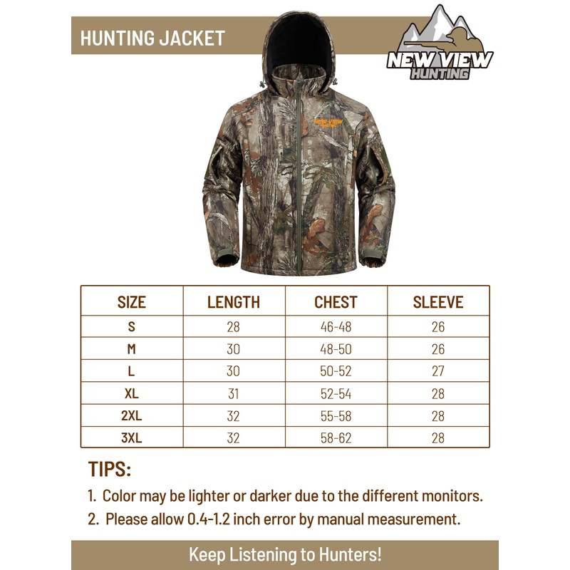 NEW VIEW Insulated Hunting Jacket for Men Cold Weather, Warm Camo Hunting Jackets with Hood, Water Resistant Hunting Clothes