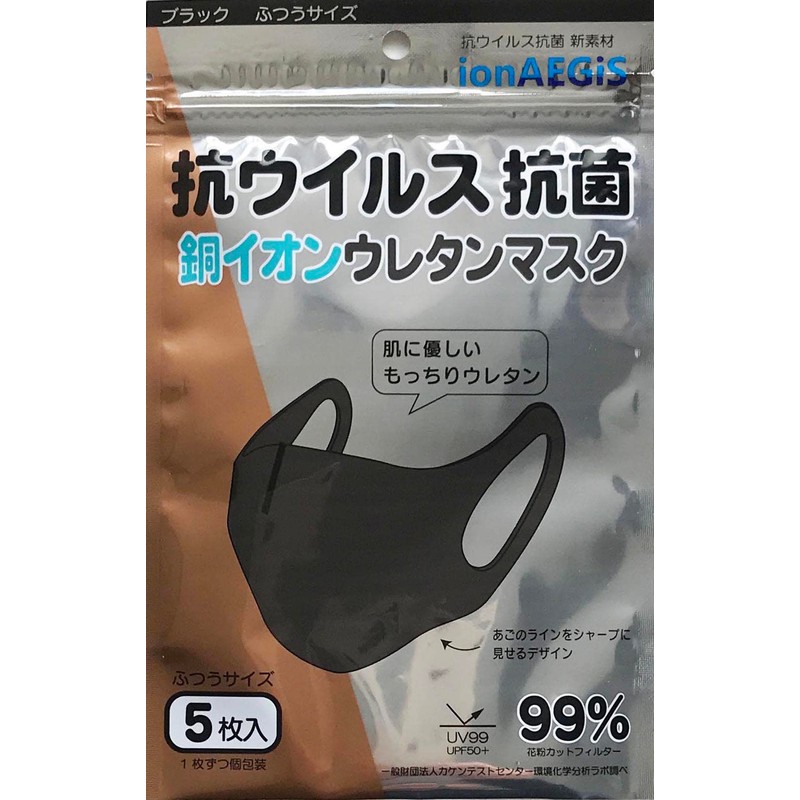 New! Washable Antiviral Antibacterial High Performance Polyurethane Copper Ion Mask, Pack of 5